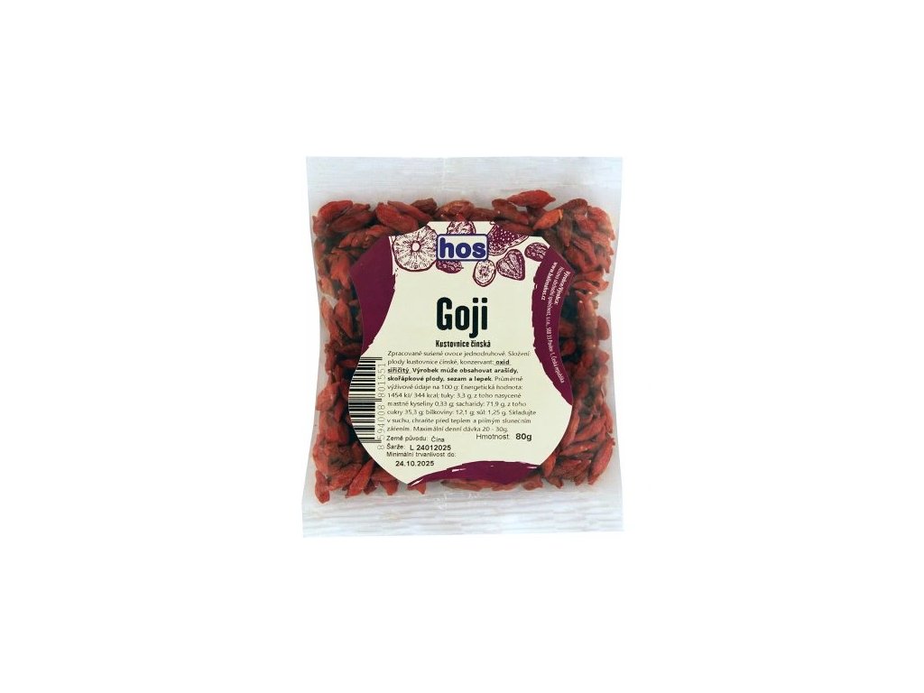 Složení: 100 % sušené plody kustovnice čínské (goji).